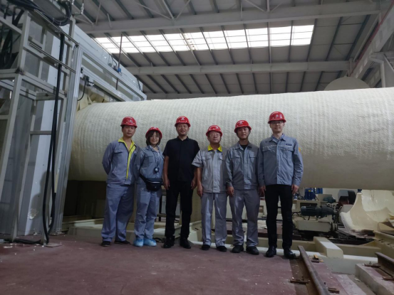河北君业科技股份有限公司董事长潘存业、总经理杨智丽这对军旅企业家具有军人情怀,立志产业报国。2020年7月31日下午,在董事长潘存业和总经理杨智丽的总体部署和亲切关怀下,在全体技术部和生产部的通力合作下,河北君业科技股份有限公司与国内最大白料生产厂家烟台万华化学合作,联合技术攻关,联手合作生产的新产品顺利生产成功。该产品大管径1420mm,单枪喷涂,102mm保温层,这种合格产品的诞生,标志着全水料喷涂缠绕试生产成功!