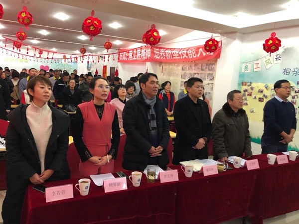 河北君业科技股份有限公司董事长潘存业、总经理杨智丽、副总经理王金华出席本次大会,此外还特别邀请到了唐山劳动技师学院院长李文利、员工家属代表销售部郗小建夫人李若萱、挤出车间王宝喜夫人毕雪凤。大会由孙玉春主席亲自主持。