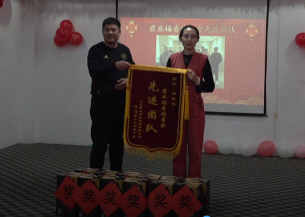 河北君业科技股份有限公司总经理杨智丽为君业福音读书会先进团队销售部颁奖