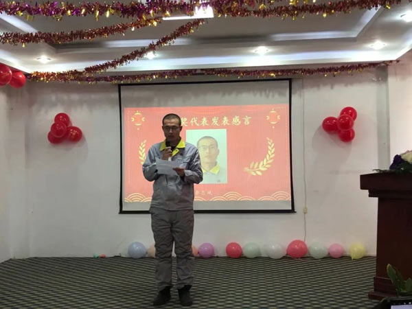 君业平安百日会战获奖代表挤出车间李志斌发表感想