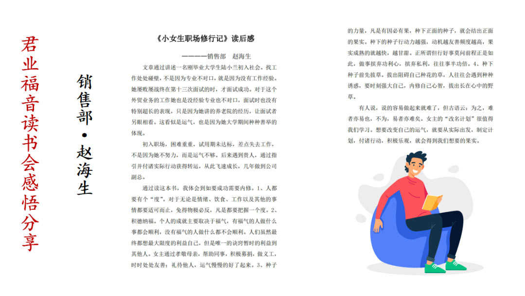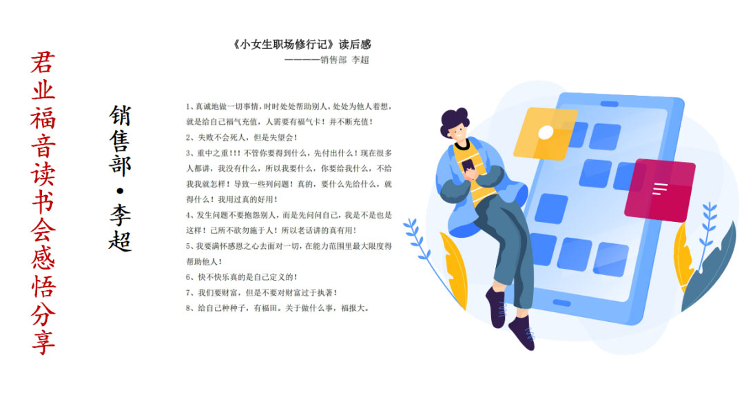 君业福音读书会获奖代表销售部郗小建发表感想