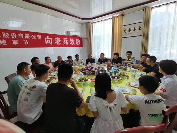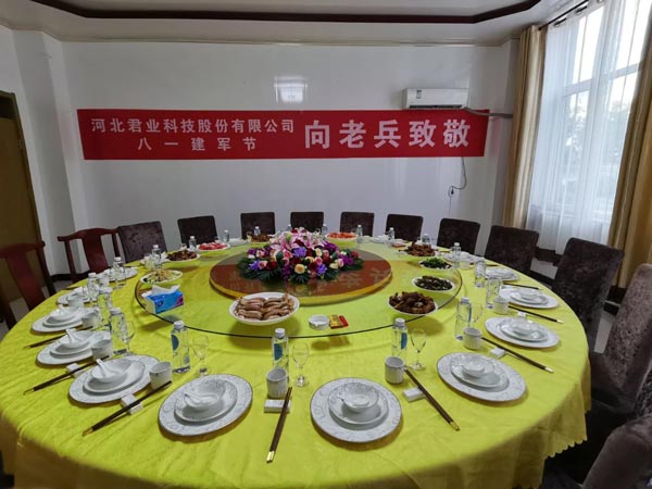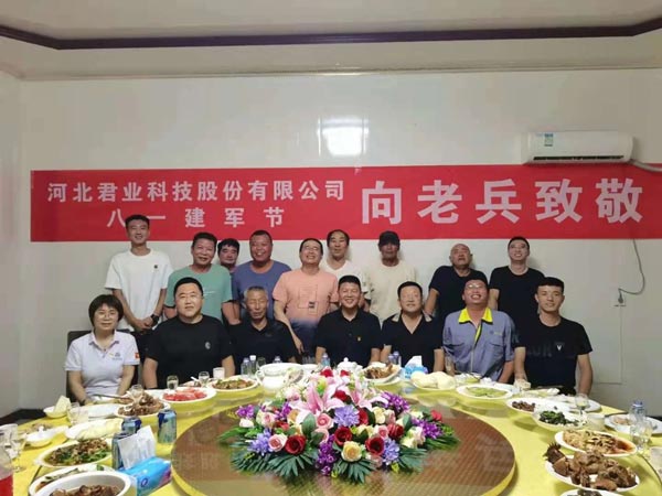 2021年8月1日晚,正值“八一”建军节,为庆祝中国人民解放军建军94周年,身为6退役军人的河北君业科技股份有限公司董事长潘存业,特意为公司退役军人们举办“八一”建军节老兵招待会。
