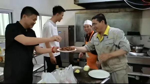 河北君业科技股份有限公司董事长潘存业正在亲手制作菜品