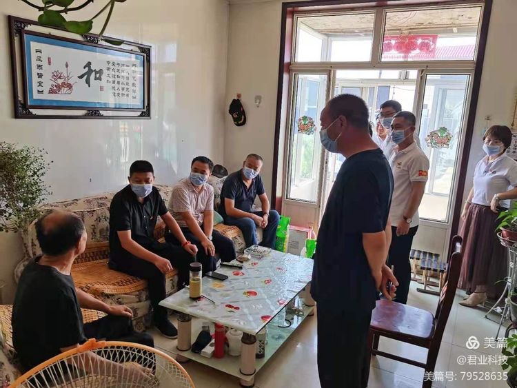 今天是中国人民解放军建军 94 周年,为进一步弘扬拥军优属、拥政爱民的光荣传统,营造尊崇关爱军人的社会氛围,2021年8月1日,正值“八一”建军节,河北君业科技股份有限公司董事长潘存业、河北君业科技股份有限公司生产副总兼党支部书记王金华与开发区管委会办公室副主任关立强、黑沿子镇政府主任科员毕经用组成慰问组,深入基层,走访慰问困难退役军人。