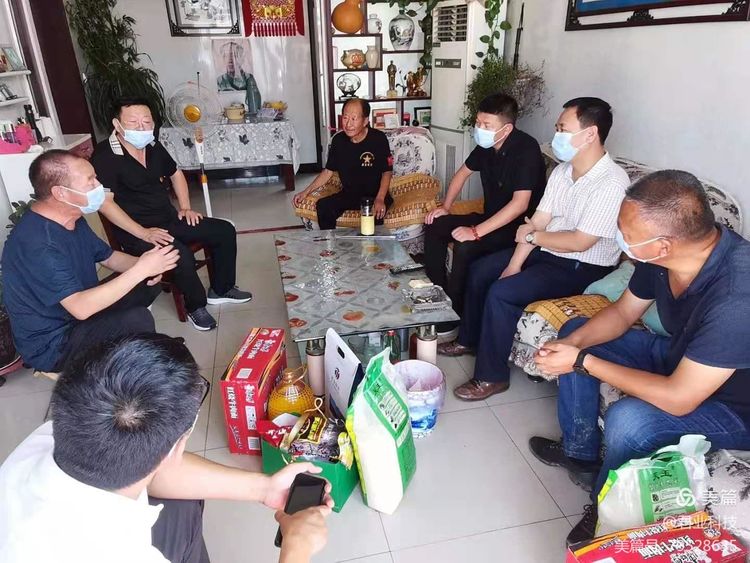 河北君业科技股份有限公司董事长潘存业、生产副总兼党支部书记王金华在吴香义家中与吴香义亲切交谈