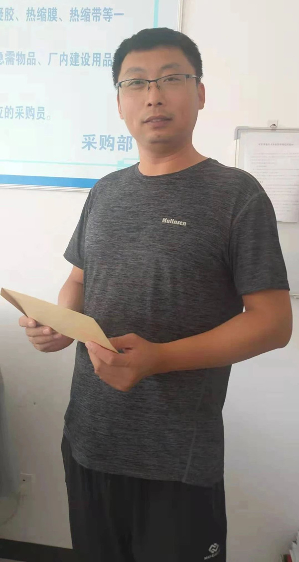 公司退役军人代表王伟收到慰问金
