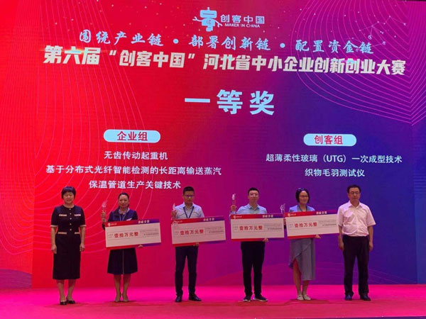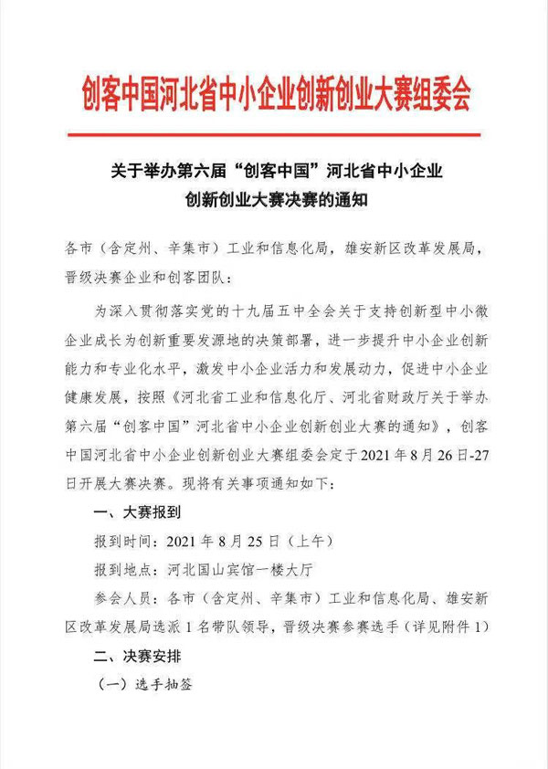 2021年8月26日至27日,第六届创客中国中小企业创业创新大赛决赛在河北省省会石家庄隆重举办。此次大赛由河北省工业和信息化厅、河北省财政厅联合组织并举办。全省初赛参赛企业400多家,初赛晋级共30家进入决赛。创客中国河北省中小企业创新创业大赛组委会纪律严明,标准高超,评委由7名专家团队组成,线上全程直播,线下参赛团队全员参与,公开、公证、透明、严肃。决赛分企业组和创客组,设一、二、三等奖。河北君业科技股份有限公司在大赛决赛中表现出色,一路过关斩将,荣获企业组大赛决赛一等奖,本次大赛决赛在河北国山宾馆举行了隆重的颁奖典礼。