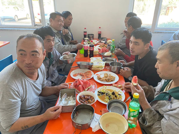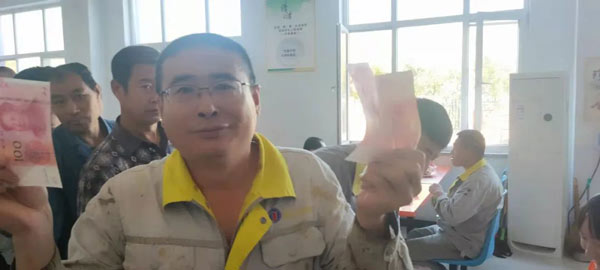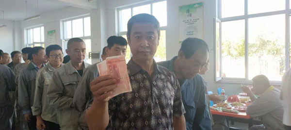 饭后,员工们高兴的完领取了公司发放的中秋礼金。