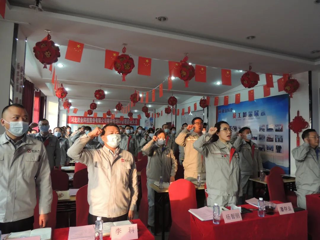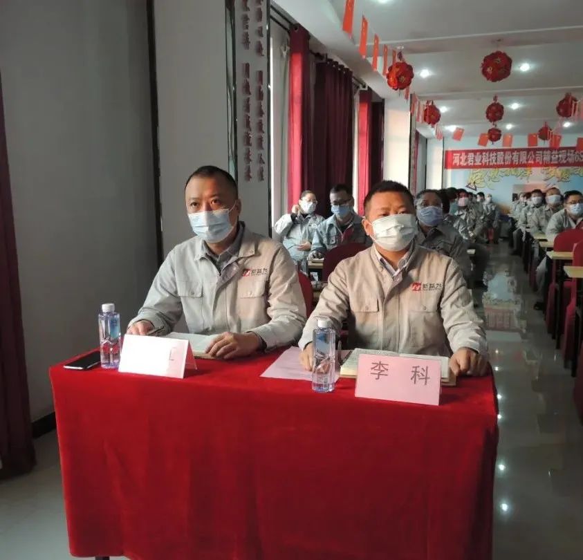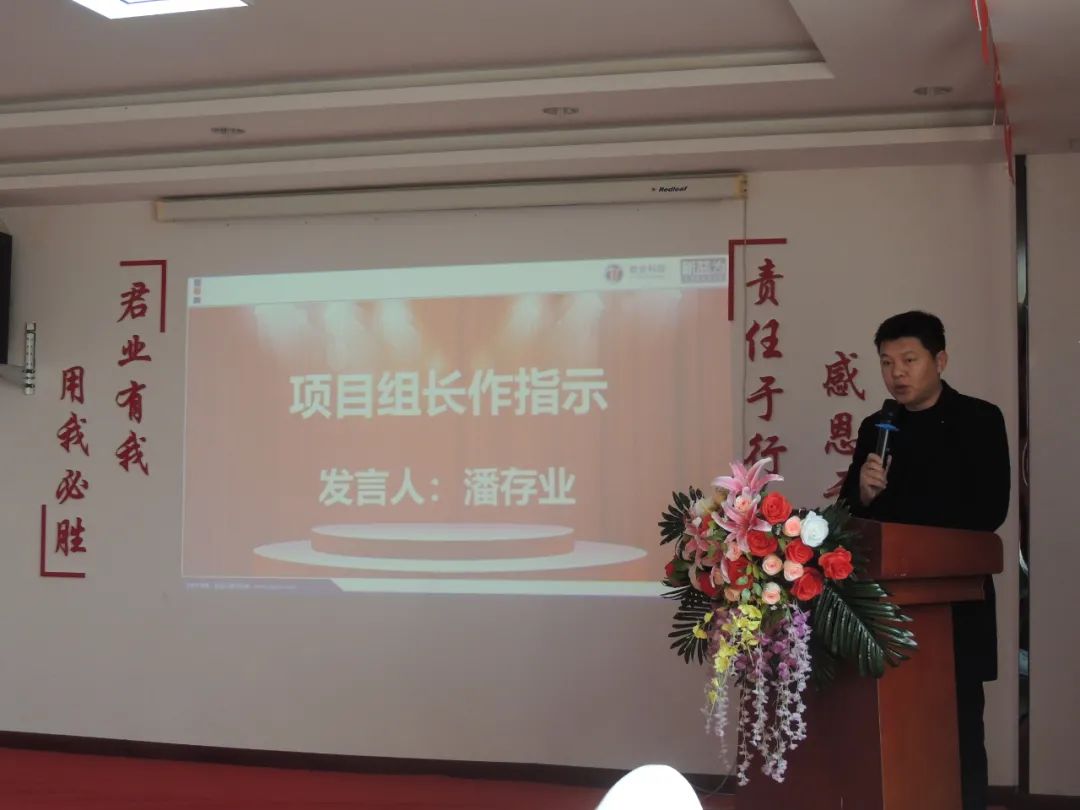 会议主要议程是:董事长潘存业为推进办公室和样板区队长授牌,并带领全体员工宣誓;新益为专家老师袁红对精益6S现场管理全程计划进行了介绍;新益为运营总监李科做计划部署;董事长潘存业做重要讲话,并宣布河北君业科技股份有限公司精益6S现场管理正式启动。