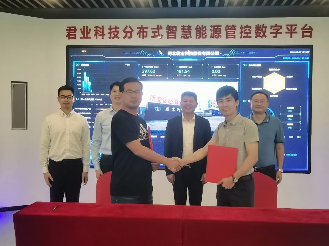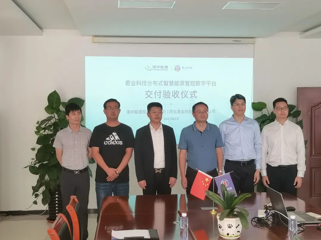 2022年9月16日上午,河北君业科技股份有限公司与港华能源举行“智慧能源管理系统”交付验收仪式,助力低碳工厂推进,实现公司能源数字化管理,为进一步节能降碳提供数据支撑。河北君业科技股份有限公司董事长潘存业出席验收仪式。