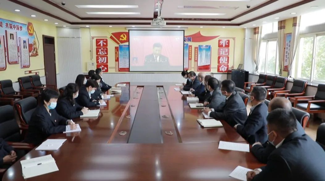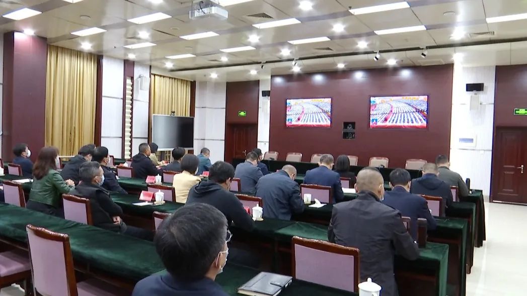 在区行政中心第四会议室,区委副书记、区长霍强等区四大班子领导集中收听收看了开幕会直播,认真聆听了习近平总书记所作的报告。