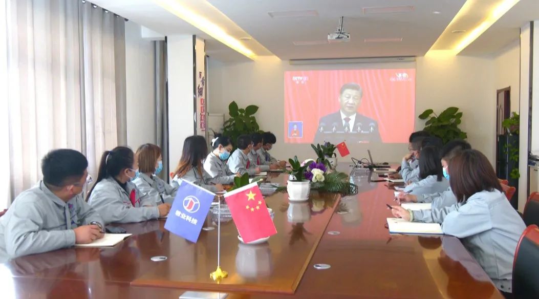 河北君业科技股份有限公司的党员职工代表认真收听收看了党的二十大开幕会直播。大家难掩振奋与喜悦之情,早早来到会议室等候直播,认真聆听了习近平总书记所作的报告。