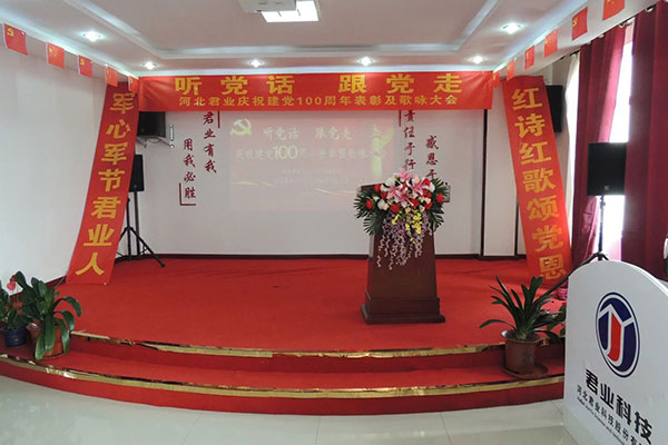 为庆祝中国共产党建党100周年,唱响爱国爱党主旋律,歌颂祖国铭记党恩,2021年6月27日,河北君业科技股份有限公司全体干部员工在公司三楼会议室举行“听党话·跟党..