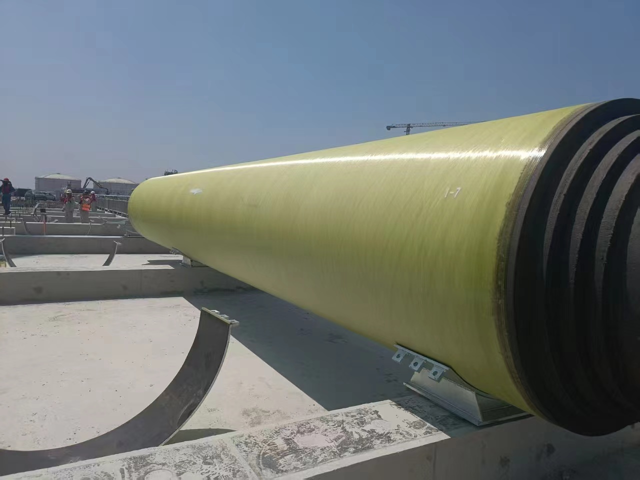在玻璃钢生产线上,将浸润合成聚酯聚酯树脂的玻璃纤维按照缠绕角度均匀缠绕在管道外表面,确保树脂浸透玻璃纤维布,无干斑、无气泡。缠绕过程中要保持张力均匀,保证玻璃纤维布紧密贴合在管道保冷层外表面,形成连续、致密的玻璃钢保护层。